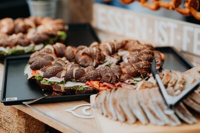 verschiedene Belägen (Wurst- & Käseaufschnitt, Aufstriche, VEGAN) ideal fürs Mitternachtsbuffet, Kuchenbuffet oder Sektempfang
